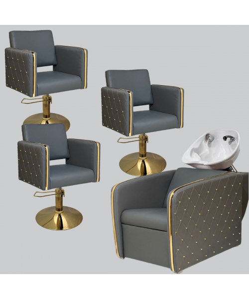 Парикмахерский комплект "Голдиум" - сочетает в себе дерзкий, но продуманный до мелочей дизайн и удобство эксплуатации. Данная модель станет настоящим украшением интерьера. Изюминкой дизайна является каретная стяжка, украшающая собой спинку и боковые поверхности кресла. Эргономичная форма сиденья обеспечивает необходимый уровень комфорта.