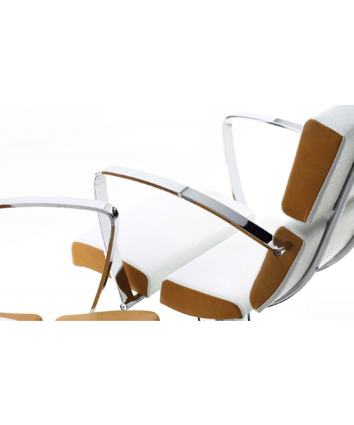 Кресло для клиента, выполнено из высококачественного поролона, каркас обтянут искусственной кожей, алюминиевые подлокотники. Комплектуется стационаром, гидроподъемником с основанием на выбор: пятилучье, диск, квадрат.