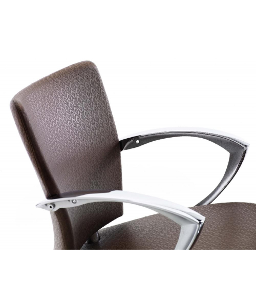 Мойка с креслом на алюминиевом каркасе. Комплектуется средней или глубокой керамической раковиной белого и черного цвета, с регулировкой угла наклона, комплектом смесителя с хромированной лейкой душа. Каркас кресла выполнен из металла, мягкие элементы обтянуты искусственной кожей высшего качества, подлокотники хромированные.