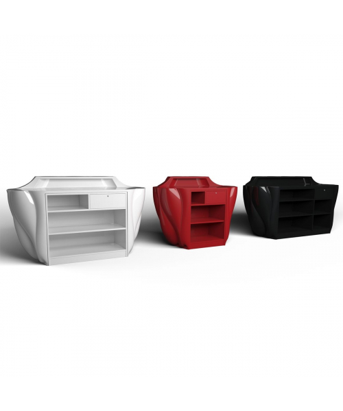 Стойка администратора "Sea Urchin 216" - с изогнутым декоративным фасадом. Корпус и наполнение стойки с артикулом G-м60003188выполнены в ламинате. Фасад выполнен из пластика в черном, красном или белом цвете.