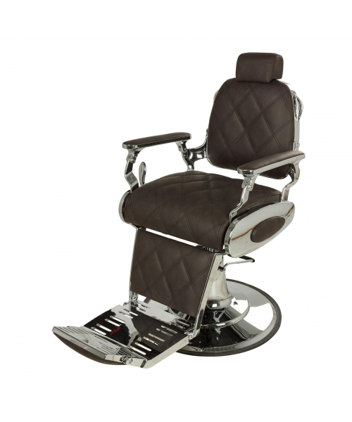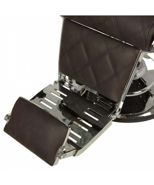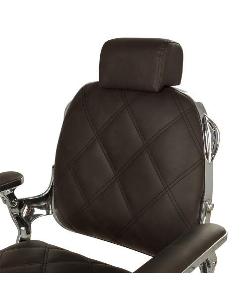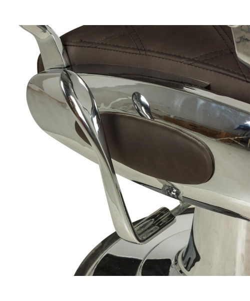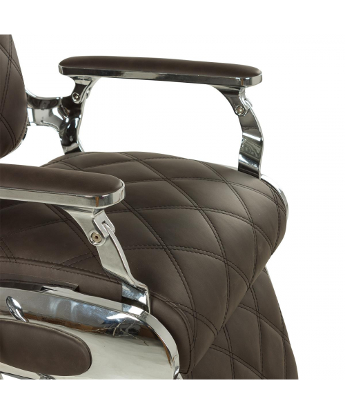 Кресло мужское барбер "Оксфорд" - модель с большим количеством хромированных деталей и прострочкой большими ромбами. Кресло имеет круглое основание и надежную, усиленную гидравлику с декорированной накладкой, которая доступна в трёх исполнениях: хромированный, белый и черный. Все эти варианты отлично впишутся в современный барбершоп. Кресло имеет стандартный функционал для барбер кресел: