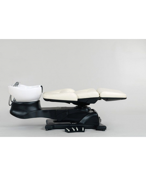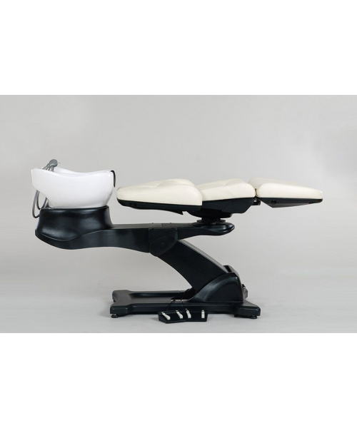 Стильный внешний вид, максимальное удобство для клиента и мастера, возможность регулировать положение с помощью ножного пульта делают мойку непревзойденной по качеству и комфорту. Можно использовать как кушетку или кресло.