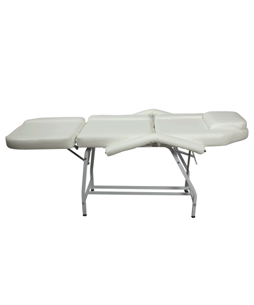 Косметологическое кресло "МД-14" разработано для проведения косметологических и массажных процедур. Оно имеет прочный металлический каркас на устойчивых ножках с подпятниками. С помощью механической регулировки положения спинки и мягкого элемента под ноги кресло раскладывается в горизонтальное положение. На спинке есть отверстие для лица, которое закрывается съемной подушкой-подголовником. Для удобства клиентов данная модель комплектуется парой мягких съемных подлокотников.