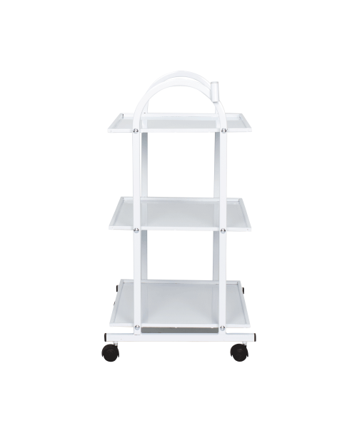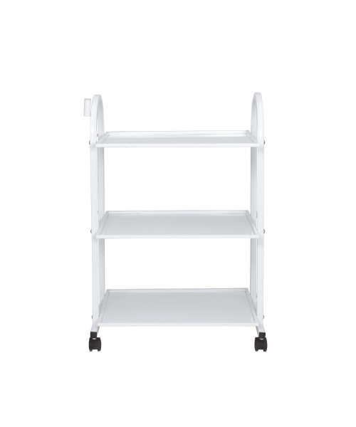 Столик косметолога "СП", с тремя удобными полками для размещения рабочих инструментов, оборудования и различных аксессуаров. Каркас тележки металлический, установлен на маневренные колеса из черного пластика. Полки также выполнены из металла и для дополнительного удобства оснащены низкими бортиками со всех сторон. Все металлические элементы окрашены влагоустойчивой порошковой краской в белый цвет, благодаря чему тележка легко очищается с помощью моющих и дезинфицирующих средств. На стойке каркаса расположен специальный держатель для крепления лампы-лупы.