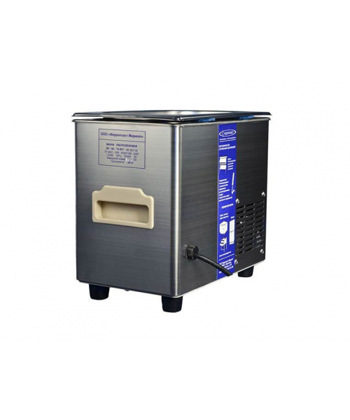 РоссияВанна ультразвуковая ВУ-09 "Я-ФП"-03 - Все части ванны - корпус, рабочая емкость, крышка - выполнены из нержавеющей стали. На дне ванны установлен пьезоэлемент, преобразующий подводимую от генератора электроэнергию ультразвуковой частоты в механические колебания дна и стенок ванны, вызывающие кавитацию в моющем растворе.
