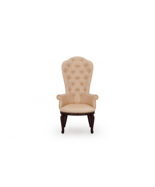 Подлокотники имеют оригинальную форму туго свернутых свитков, которые напоминают элементы капители ионической колонны.