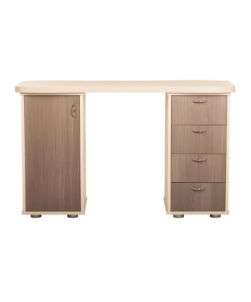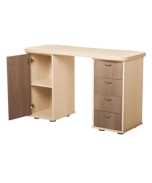 Двухтумбовый маникюрный стол 217 отличается своей универсальностью. Столешница стола изготовлена из ламинированной ДСП.