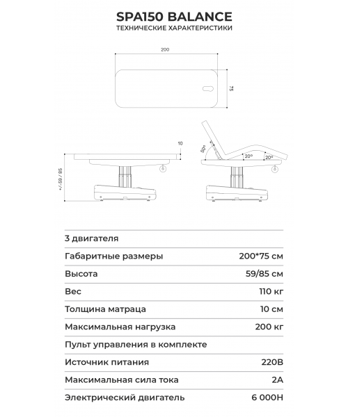 ИспанияКушетка массажная "SPA150 BALANCE ELREY" - инновационная трехсекционная кушетка с цельным матрацем и деревянным корпусом ложа. Корпус основания — сталь! Три электродвигателя обеспечивают максимальный комфорт в работе. Вы можете выбрать темное дерево для более сдержанного и элегантного оттенка или светлое дерево — теплое и гостеприимное. Разработано в Барселоне, сделано в Азии. Для Вас.