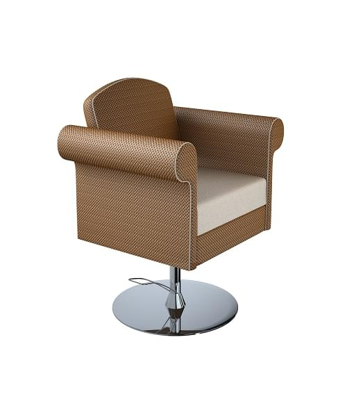 Парикмахерское кресло для клиента оригинальной формы, выполнено из высококачественного поролона, каркас обтянут искусственной кожей, мягкие подлокотники. Отличается наличием декоративных швов. Комплектуется стационаром, гидроподъемником с основанием на выбор: диск, квадрат.