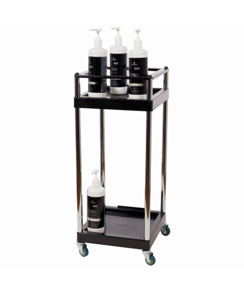 Тележка парикмахерская для шампуней ШАМПУЛАНС 2 изготовлена из пластика на металлическом хромированном каркасе, что придает надежность и долговечность.