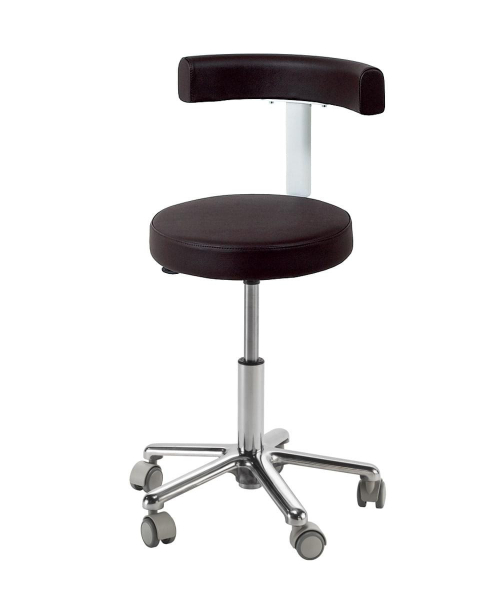 Стул мастера педикюра выполнен из высококачественного поролона, каркас обтянут искусственной кожей. Со спинкой или без спинки. Комплектуется пневматическим подъемником с хромированным или пластиковым пятилучьем, с опорой для ног или без опоры. Размер: 62х62х75-87