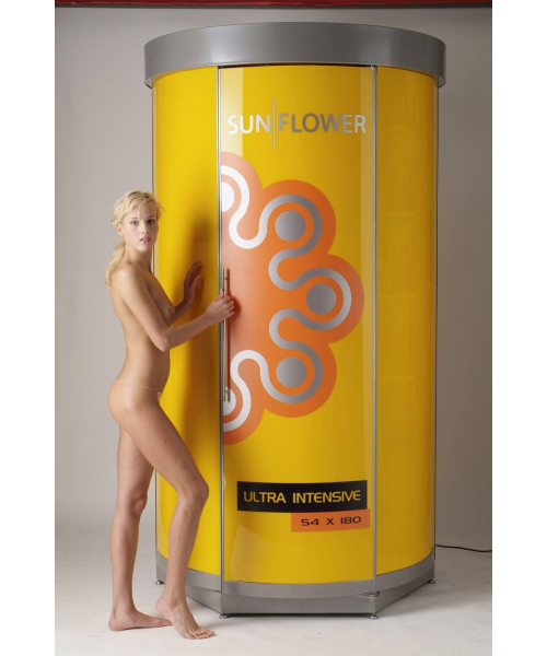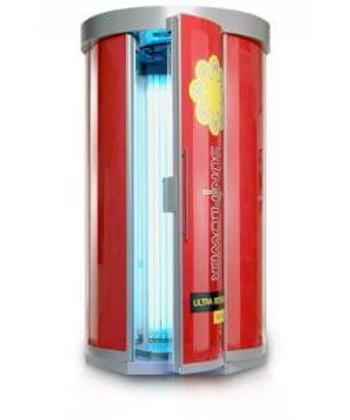 54 лампы по 180W; мощность 9720 W; размеры: высота 242 см, диаметр наружный 130 см, диаметр внутренний 78 см, глубина с открытой дверью 170 см; пульт администратора (3 счетчика), который позволяет контролировать работу солярия с ресепшена вашего салона; сенсорный пульт клиента. Удобное управление функциями солярия внутри кабины. Регулировка мощности вентилятора, громкости музыки и голосового сопровождения; проигрыватель МР3 с активным сабвуфером и картой памяти на 1 Гб (уже содержит набор популярных треков, который вы можете расширить по вашему желанию; голосовое сопровождение меню солярия; мощный вентилятор в крыше солярия (7 ступеней регулировки мощности обдува); дополнительная вентиляция у/ф ламп (увеличивает срок службы и эффективность излучения); прочный пластиковый корпус с подсветкой, цвет вы можете выбрать любой, в зависимости от дизайна вашего салона; автоматический выключатель и УЗО (устройство защитного отключения) 40А, пятиконтактная вилка 380 V евростандарт 32 А; возможные цвета: желтый, красный, зеленый, синий, оранжевый.