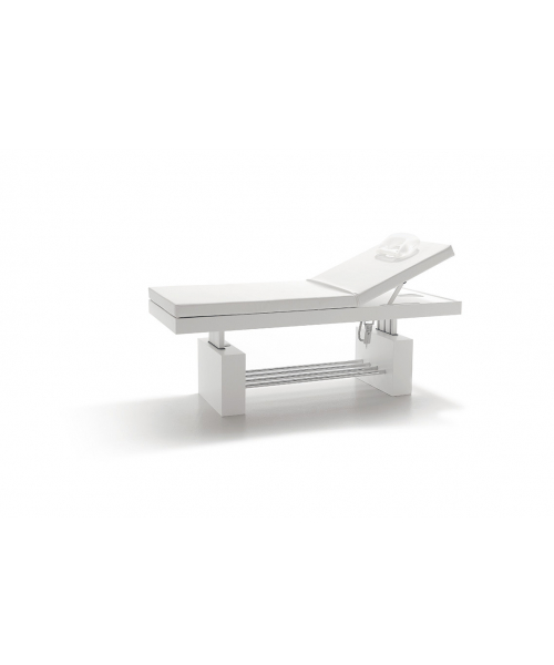 Эргономичная модель, которая нашла широкое применение в СПА-салонах. Она отлично подходит для проведения самых разных СПА-процедур для лица и тела, а также для выполнения массажа. Производителем предусмотрена возможность регулировать высоту, угол наклона и положение спинки. Изменять высоту можно в пределах 60-82 см. Для регулировки используется электрическая подъемная система. Возможно исполнение в двух стилевых решениях – матовый белый и лакированный венге. Изделие оснащено дополнительным подголовником, обеспечивающим максимальный комфорт во время проведения процедур.