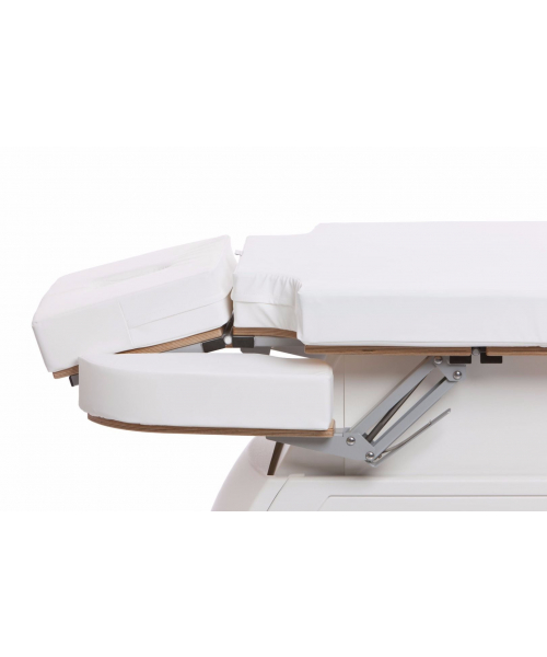 Горизонтальный матрац с сегментной разбивкой головной части, что делает процедуру массажа комфортной благодаря прорези для носа и опускаемым подлокотникам.
